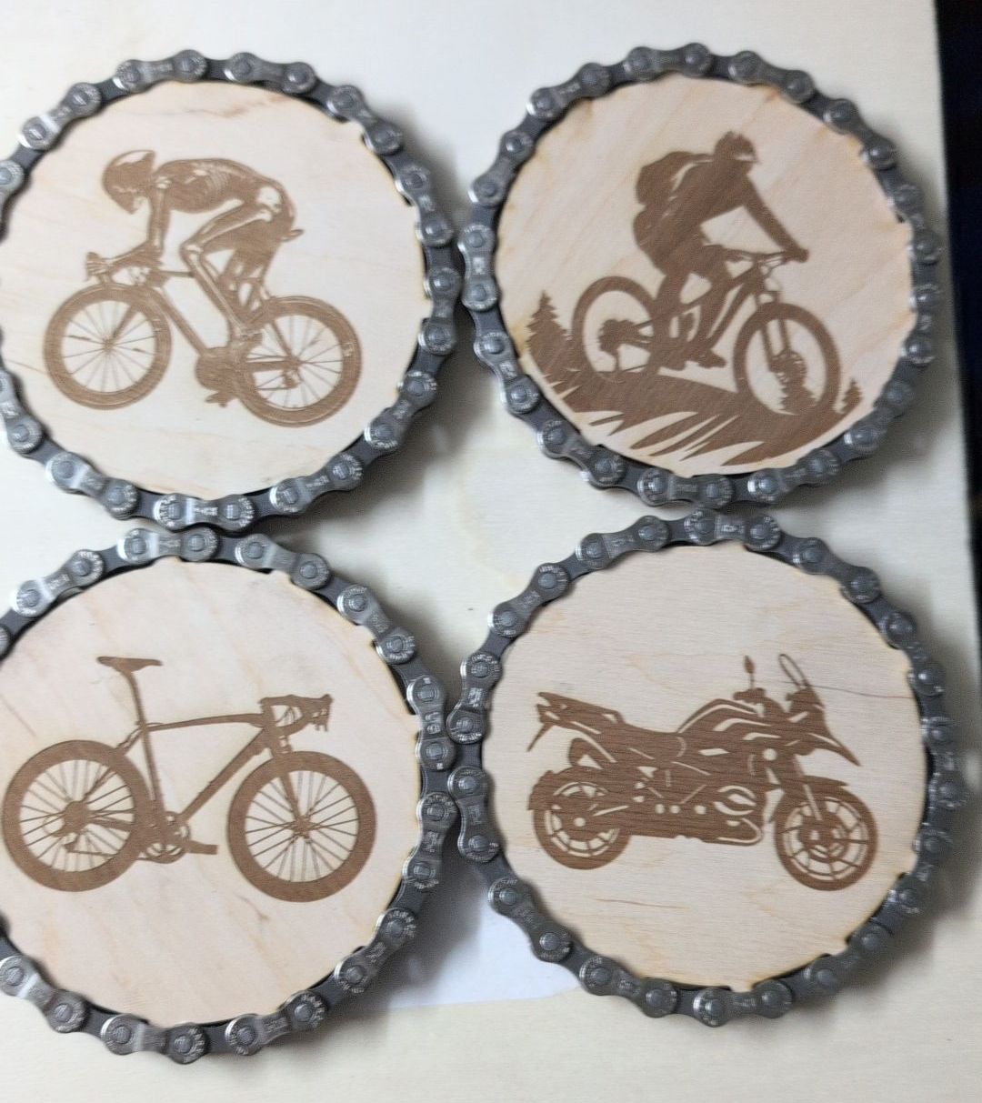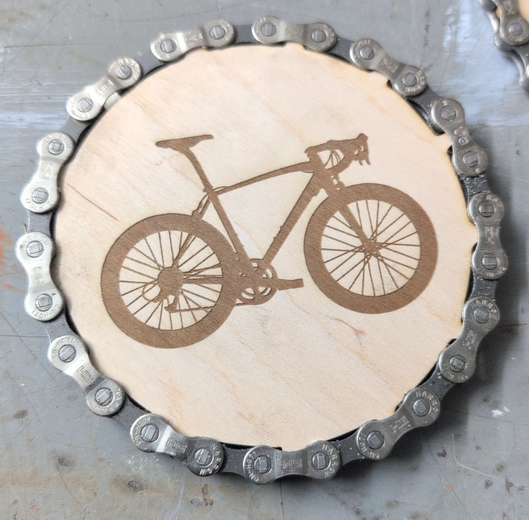 Einzigartig und nachhaltig: Entdecken Sie unsere Upcycling-Untersetzer aus alten Ketten, die wir gerne mit Ihrer persönlichen Gravur veredeln.